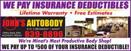 John's Auto-Body is a locally owned business that has been providing exceptional auto body repair services for over 25 years. We're a top-rated business and provide our services at lower prices!